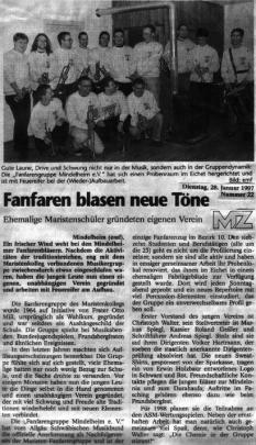 Der 1. Mai 1996 - ein verheißungsvolles Datum. Es ist das Gründungsdatum des neuen Vereins: Acht Gründungsmitglieder sind an der Geburtsstunde der „Fanfarengruppe Mindelheim e.V." beteiligt. Der neue Verein wurde vom Allgäu-Schwäbischen Musikbund als direkter Nachfolger der „Fanfarengruppe des Maristenkollegs" anerkannt. Somit lebt die Tradition in dem neuen Verein weiter.