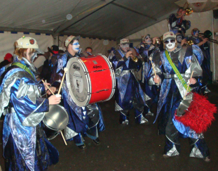 Schon früh in der neueren Vereinsgeschichte wurde die Idee geboren, sich neben der Pflege der mittelalterlichen Musik ein weiteres musikalisches „Standbein" zu schaffen, und so wurde bereits 1997 nach Schweizer Vorbild eine „Gugga-Musik" aus der Taufe gehoben, die mit Party- und Stimmungsmedleys nicht nur im Fasching ihren Zuhörern ordentlich einheizen sollte. Dies war mit rein „historischer" Instrumentierung natürlich nicht zu leisten. Es wurden neue Instrumente angeschafft oder neu gebaut und es konnten auch begeisterte Musiker mit Posaune, Tuba und Sousaphone hinzugewonnen werden. Wir sind nun wirklich nicht mehr zu überhören sind, wenn wir in Stadt und Land vor allem bei überaus zahlreichen Faschingsbällen und -umzügen für ausgelassene Stimmung sorgen. Über die Jahre entwickelte sich das "Gugga-Häs" weiter und eigene kreative Ideen wurden mit aufgenommen. Hieraus entstand auch unser Makottchen, das Zebra, das uns seit nun an während unserer Guggensaison begleitet.